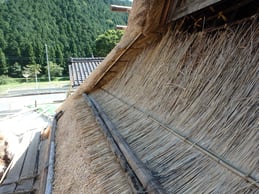 トタン屋根は釘で、瓦は土ないし桟木に引っ掛けることで、屋根材を固定している。茅葺きはというと…。