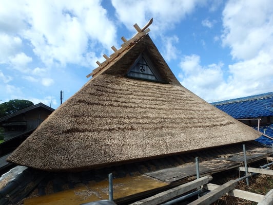 汗だく…ススだらけ…になりながら葺いた現場も、夏の終わりとともに完了した。よりによって一年で一番暑い時期を切り取ったかのような現場。文字通り熱かった約2ヶ月。ホッと胸を撫で下ろすとともに、急に訪れた秋の気配が何となく寂しくも感じられる。